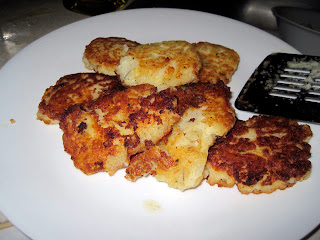 , and 1 tbs of parmesan cheese, and I actually fried them in a lot of oil, not just 1 tbs. Also, when I made the mashed potatoes I mixed goat cheese in.. so that was already added